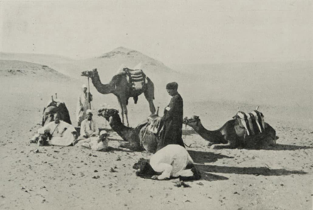 Молитва в пустыне. Группа арабов в районе пирамид Гизы. 1911 год
