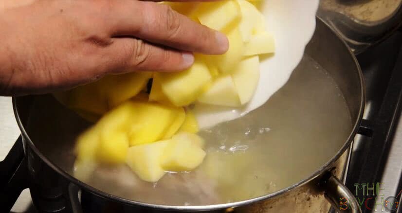 6.В готовый бульон спустя положенное время, опускаем картофель.