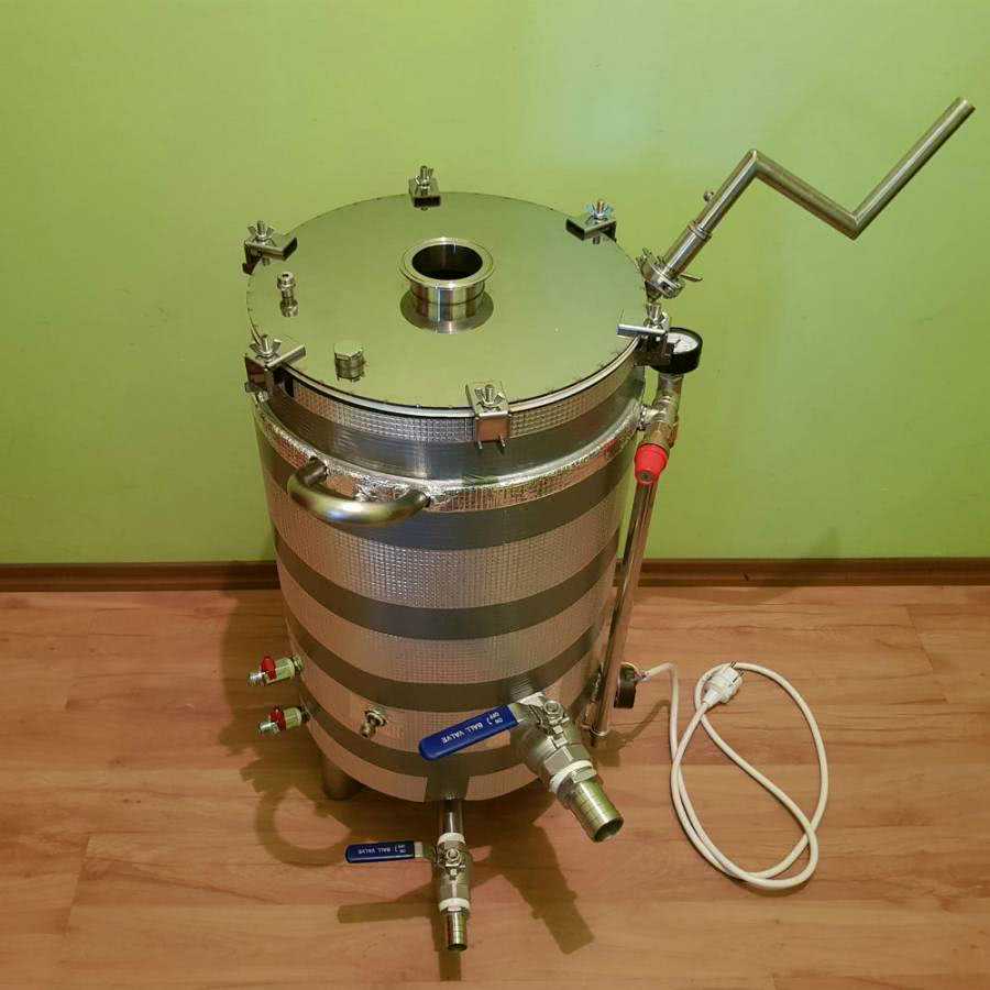 - Кастрюлю лучше брать из химически нейтральных материалов, лучше всего подойдет бак из нержавейки на 30-40 л.