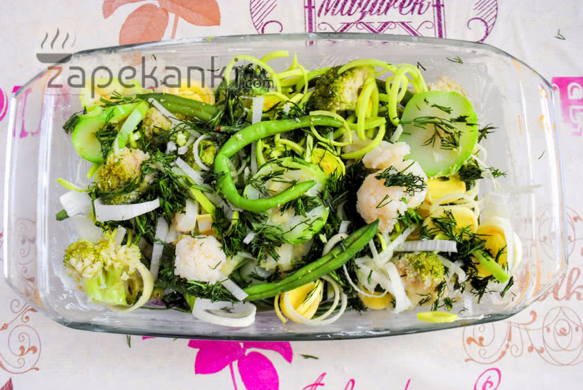Запеканка из брокколи и цветной капусты с кабачком и фасолью