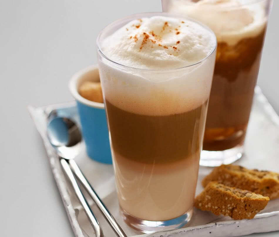 Латте – кофейный напиток, который традиционно подается на завтрак. В его составе эспрессо (3 части) и молоко (1 часть). Особенностью этого кофейного коктейля можно считать способ приготовления. Напиток наливают следующим образом: в стакан или большую чашку наливают одну часть кофе и три части вспененного подогретого до температуры 70˚С молока. Но делают это как можно аккуратнее, чтобы не допустить смешивания жидкостей. Молоко оказывается самым нижним слоем, далее идет кофе, и сверху – молочная пенка.