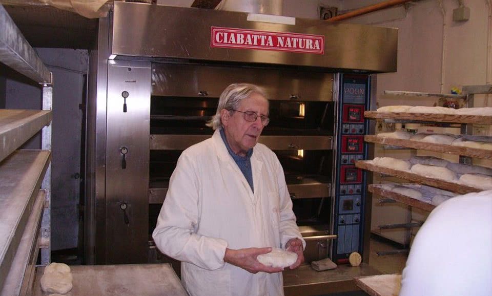 Чиабатта – это хлеб, не отличающийся многовековой историей. Официальная дата появления этой выпечки – 21 сентября 1982 года. Хотя, на самом деле, её первый экспериментальный рецепт увидел свет в середине 70-х годов прошлого века, когда бывший спортсмен Арнальдо Каваллари начал свою карьеру пекаря. Он встал на путь исследователя мучных изделий в надежде изобрести новый продукт, который покорит кухни всего мира.