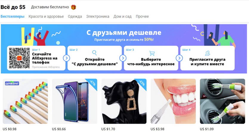 В разделе «Все до 5$» можно найти множество товаров для дома, одежду, украшения, электронику и аксессуары не дороже 400 рублей. С бесплатной доставкой AliExpress!