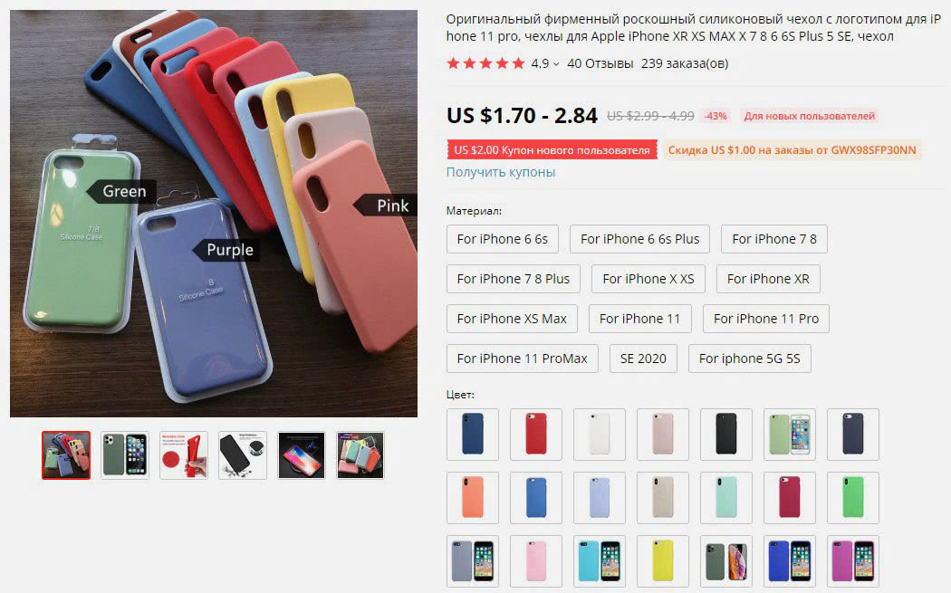 Начитать стоит с поиска. По умолчанию в результатах поиска Али предлагает вкладку «Лучший выбор», якобы там товары с оптимальным соотношением рейтинга, заказов и отзывов. По факту туда попадает всё подряд, в том числе коммерческие позиции (да, магазины платят Али, чтобы показываться выше в результатах поиска), поэтому там может оказаться чехол для айфона с рейтингом 4.4 или ремешок Apple Watch, у которого только 5 заказов.