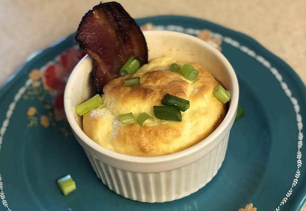 - Выпекать 30 минут при 200 ° С. Не открывайте духовку в течение первых 20 минут, так как омлет может осесть.