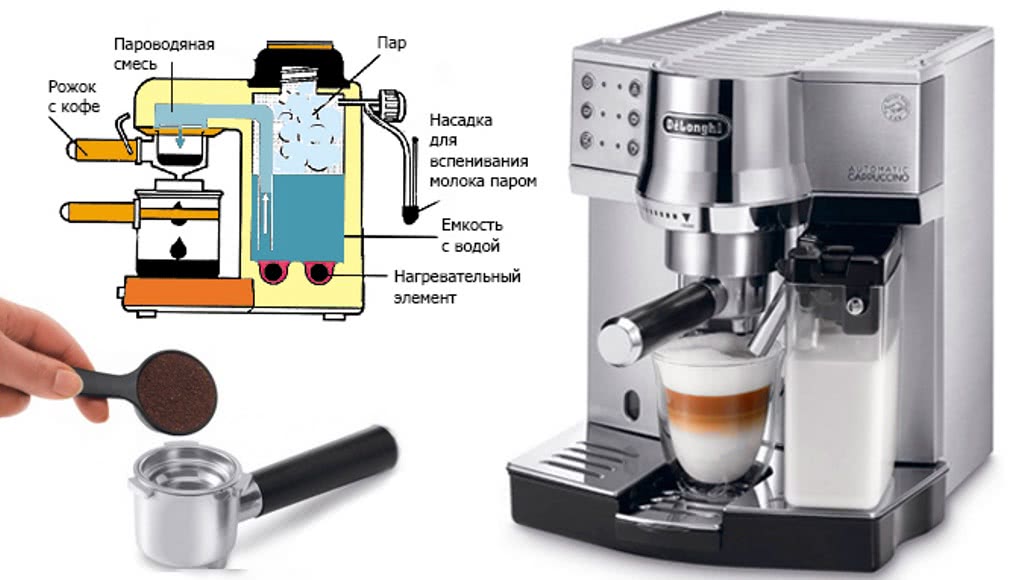 Принцип работы и отличия функционирования такой кофеварки заключаются в следующем: