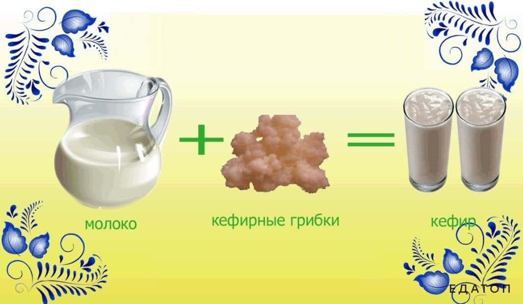 Для приготовления кефира используется необходимое вам количество молока, в которое вы добавите закваску, а затем в теплом месте выдержите кисломолочный напиток, который будете давать ребенку младенческого возраста.