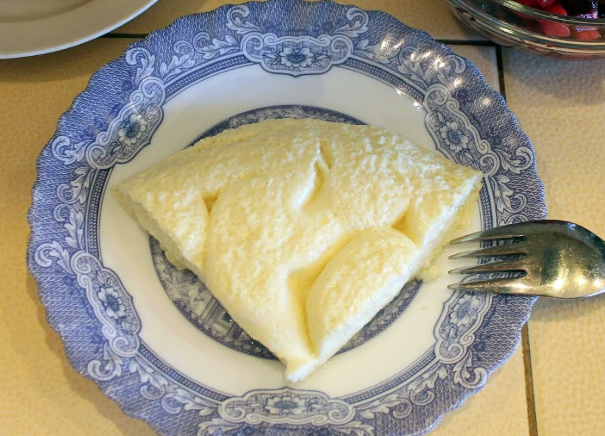 Паровой омлет из белков. Белки 2 яиц, 60 г молока, 5 г сливочного масла, соль.