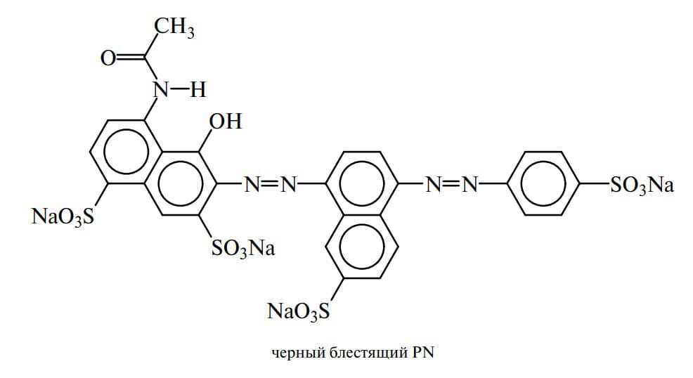 Товароведение продовольственных товаров, пищевые добавки. Синтетические пищевые красители — представители нескольких классов органических соединений: азокрасители (тартразин — Е102; желтый «солнечный закат» — Е110; кармуазин — Е122; пунцовый 4R- Е124; черный блестящий — Е151); триарилметановые красители (синий патентованный V-Е131; синий блестящий — Е133; зеленый S — Е142); хинолиновые (желтый хинолиновый — Е104); индигоидные (индигокармин — Е132). Все эти соединения хорошо растворимы в воде, большинство образует нерастворимые комплексы с ионами металлов и применяются в этой форме для окрашивания порошкообразных продуктов. Синтетические красители обладают значительными технологическими преимуществами по сравнению с большинством натуральных красителей. Они дают яркие, легко воспроизводимые цвета и менее чувствительны к различным видам воздействия, которым подвергается материал в ходе технологического потока.