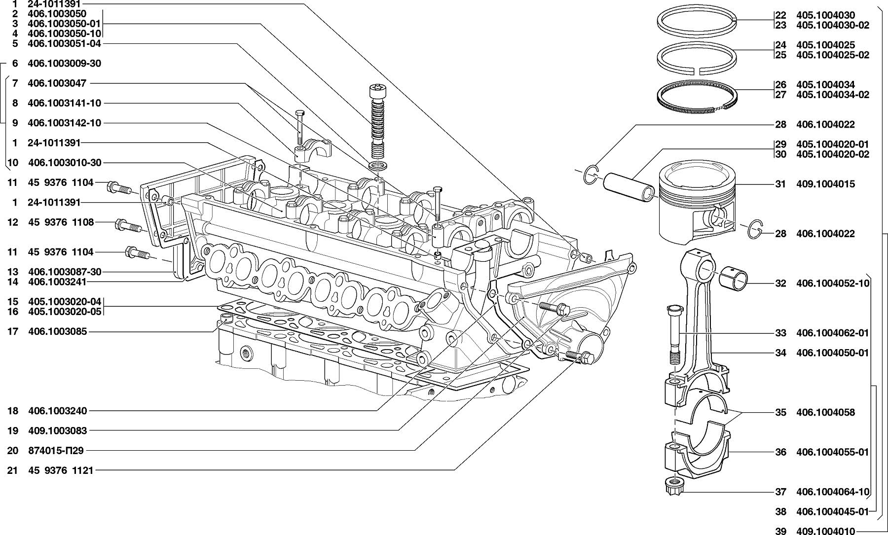 В ГБЦ, в клапанные отверстия вставлены направляющие втулки и сёдла клапанов. Внизу ГБЦ выполнены камеры сгорания, вверху расположились опоры валов газораспределительного механизма. На опорах имеются крышки, выполненные из алюминия. Первая крышка по ходу автомобиля, общая для двух первых опор обоих валов. В ней находятся упорные пластмассовые фланцы. Они вставляются в проточки, имеющиеся на шейках валов. Другие крышки опор, проходят обработку вместе с опорами ГБЦ. Поэтому их нельзя менять местами. Все крышки, за исключением первой двойной, пронумерованы. Сверху ГБЦ накрывается крышкой из алюминиевого сплава.