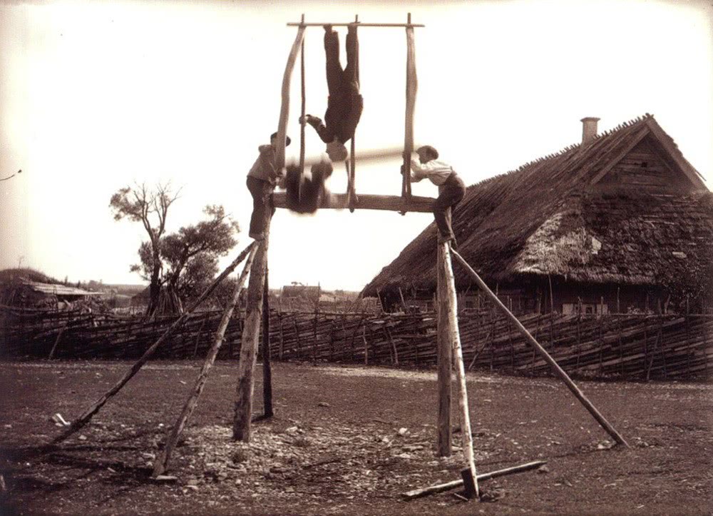 Мальчики на качелях в деревне Охессааре. Сааремаа, 1913 год