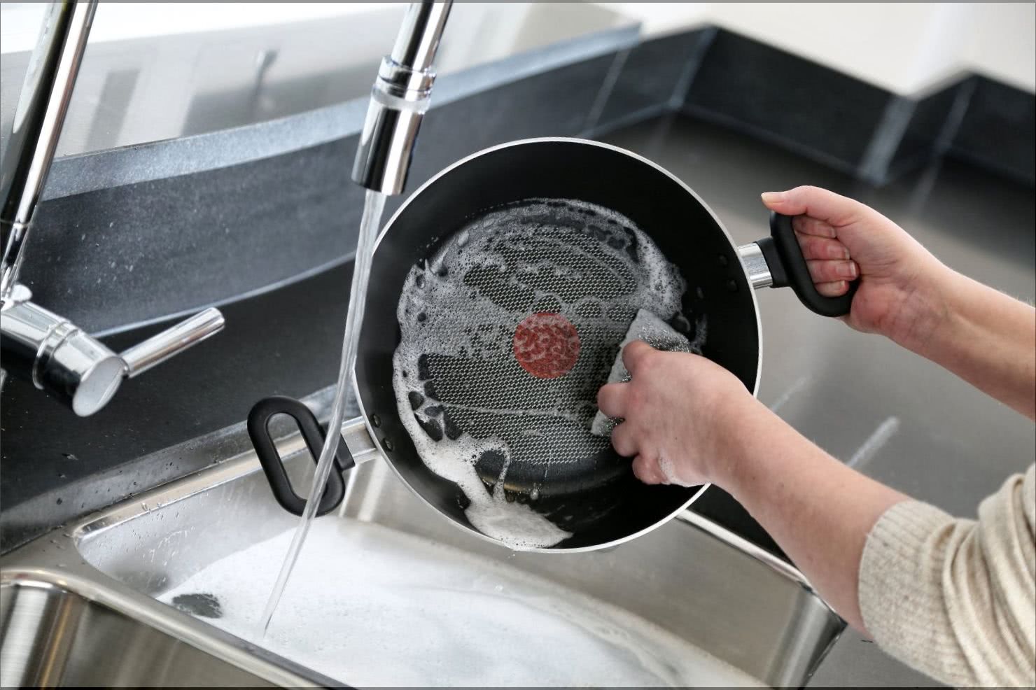 Хватает небольшого количества, чтобы быстро справиться с загрязнениями. Растворяет жир на сковородах, тарелках, столовых приборах.