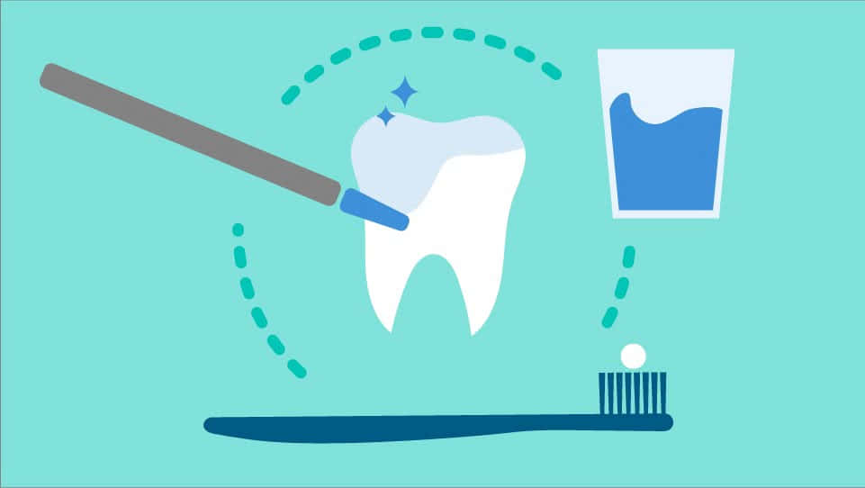 - Защитить от деминерализации. Соединение фтора с гидроксиапатитом (главным элементом зубной эмали) образует фторгидроксиапатит — вещество, которое её восстанавливает. Так происходит реминерализация эмали.