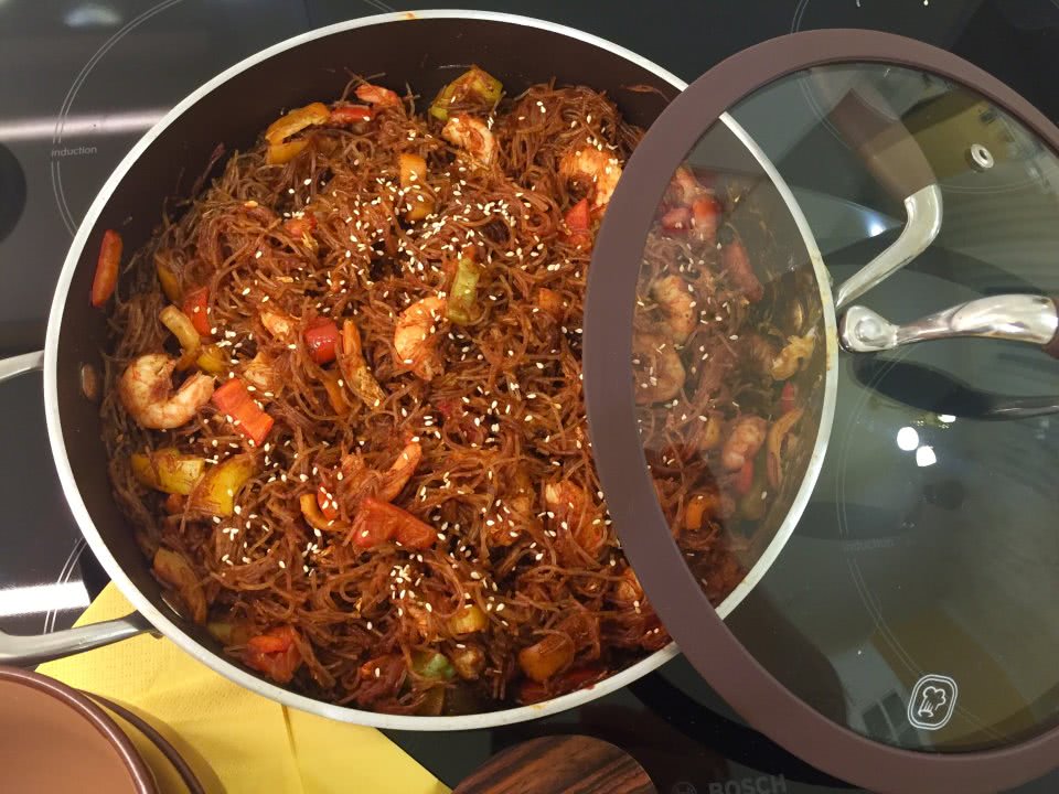 Вкусная фунчоза с креветками. Рецепт для мультиварки