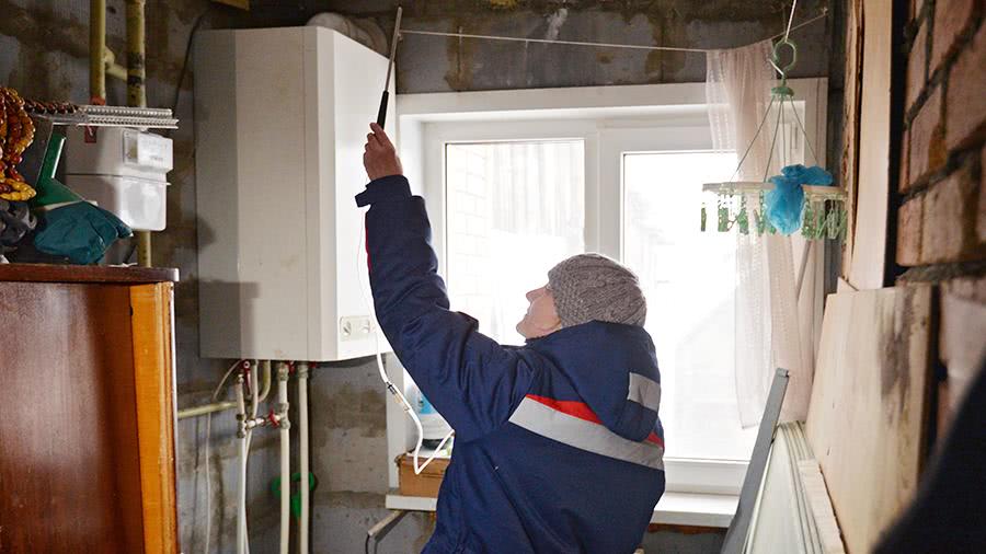 Сотрудник газовой службы во время проверки газового оборудования в одном из жилых домов