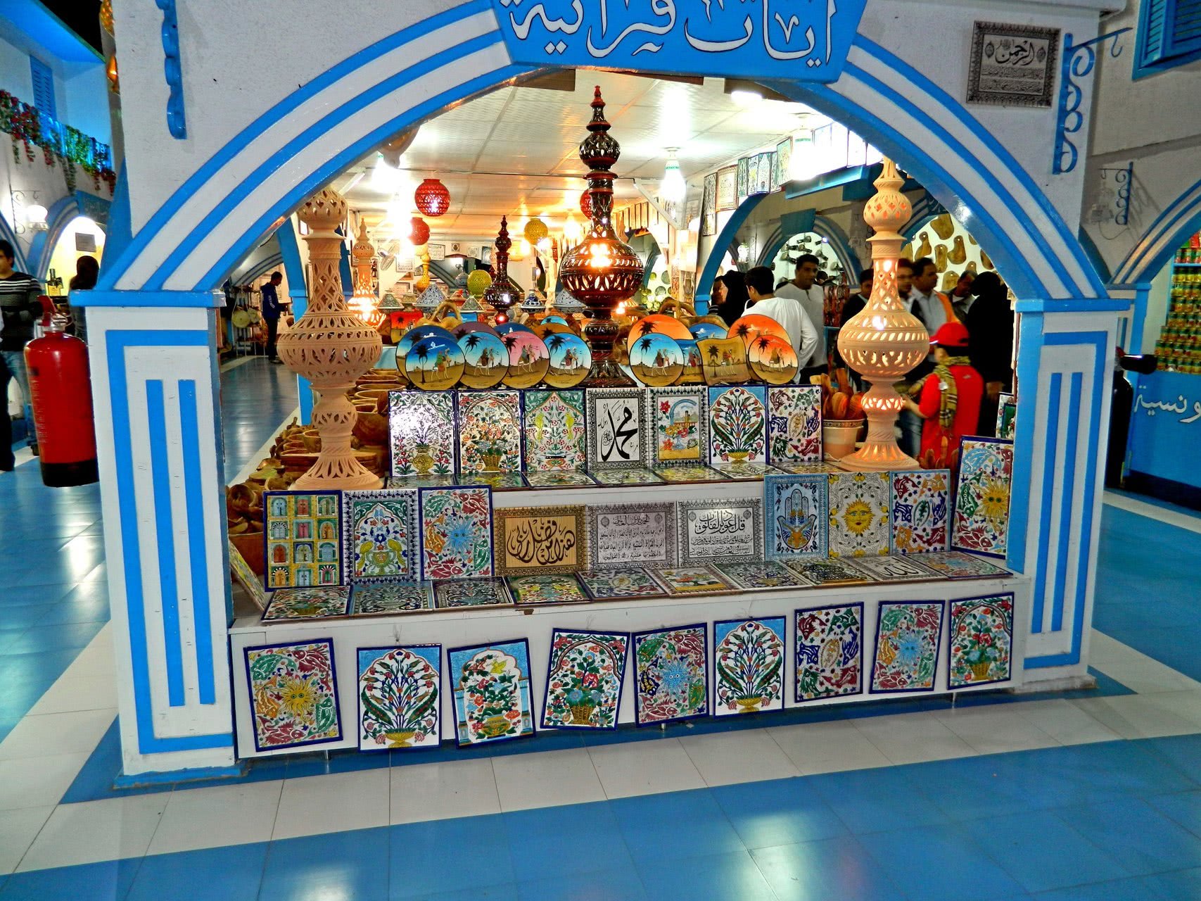 Все 90 павильонов предлагают сувениры в тематике собственной страны, плюс «сборный ассортимент» из самых разных товаров. Например, марокканский киоск предложит широкий набор тажинов, а в индийском покупают специи, турецкий славится сладостями.
