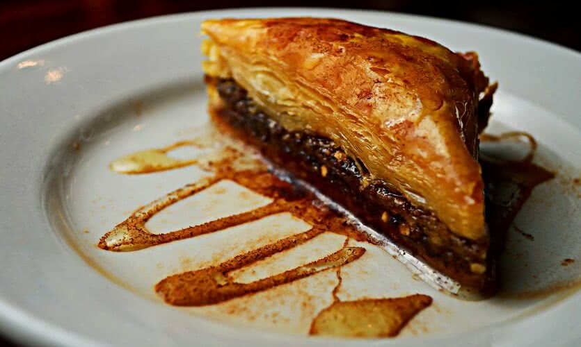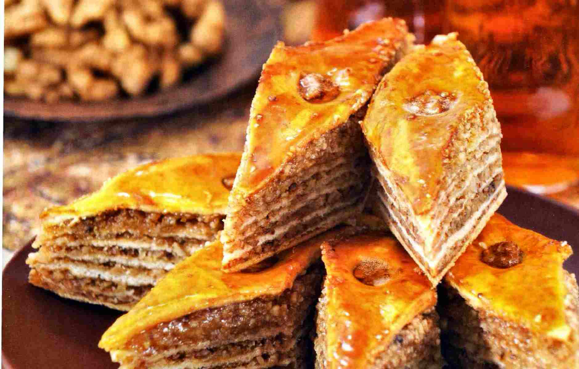 Это слоенный пирог с начинкой из мелко порубленных орехов и фруктового сиропа. Для приготовления пахлавы используют или грецкие орехи, или миндаль.