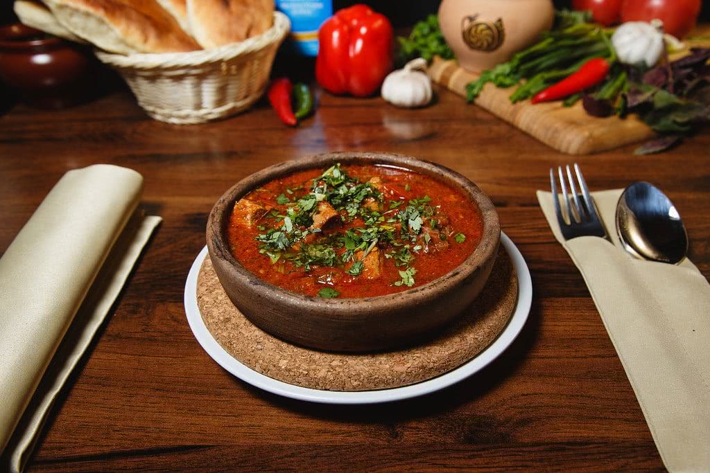 - Горячие, насыщенные супы. Чихиртма — это нежное, пикантное блюдо из кукурузной муки и куриного мяса. Харчо — острый, густой суп, который умеют готовить на огне только местные жители.