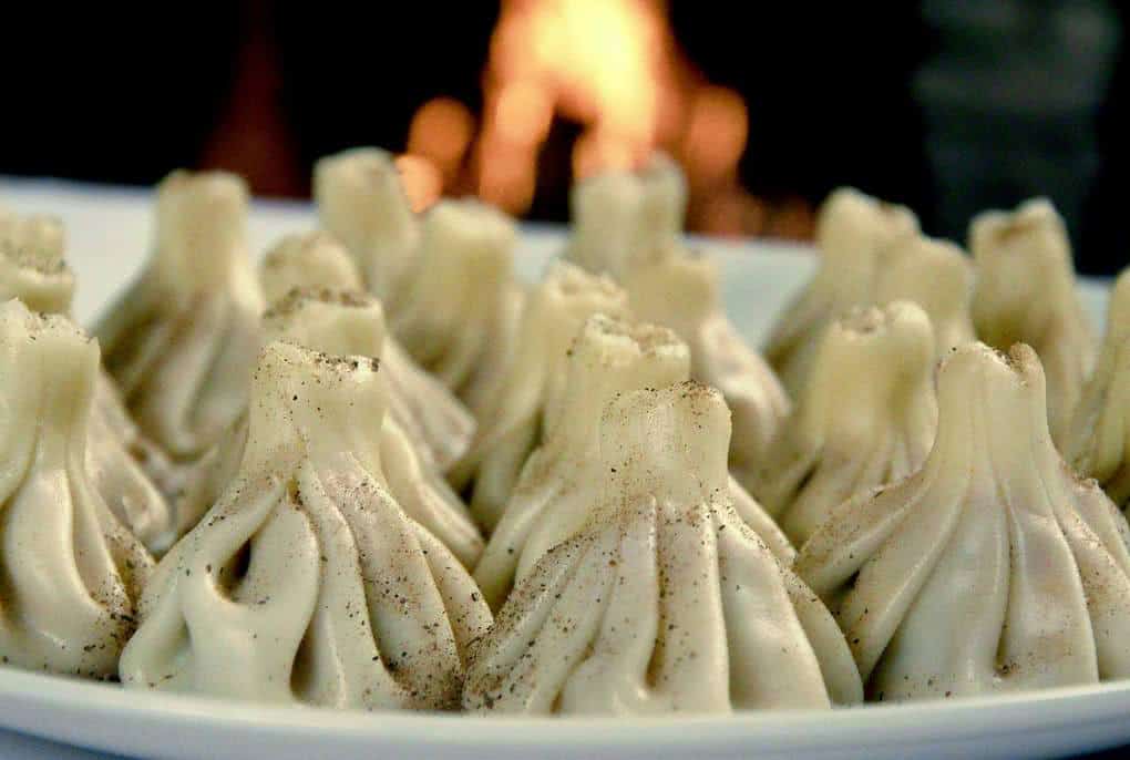 Необычайно аппетитные мешочки с начинкой из рубленого мяса, хинкали, едят руками, держа за хвостик. Откусываем кусочек, выпиваем ароматный бульон, съедаем мясо… Коментарии излишни, как и гарнир к этому блюду!
