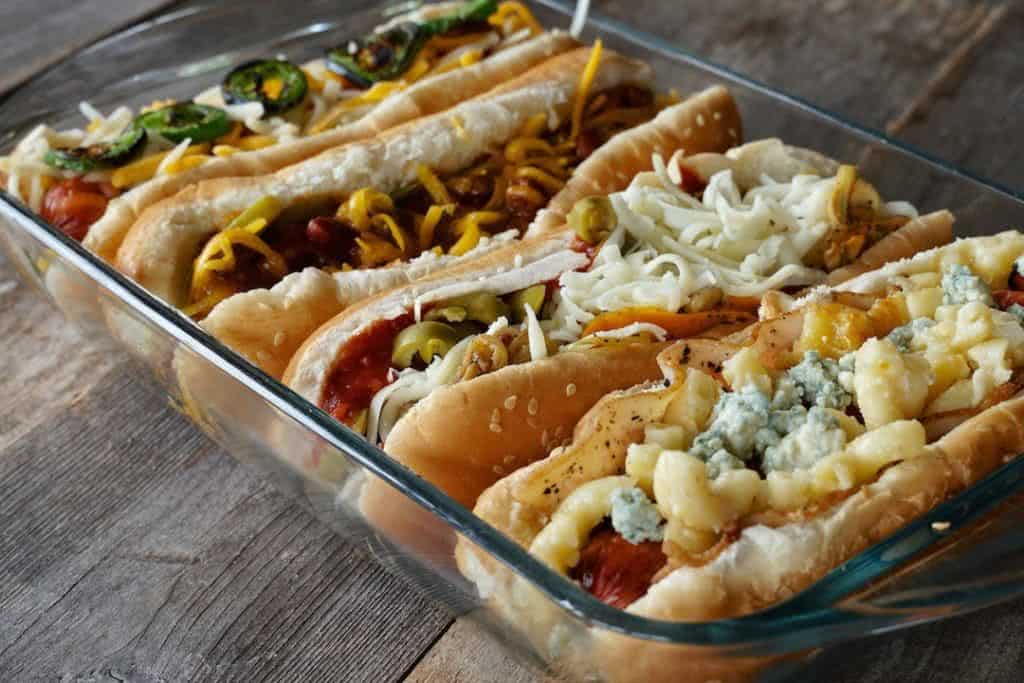We discovered a new trick while creating this story and we know you’ll love it as much as our test team did. Ready? Place your dressed hot dogs into a casserole dish and bake them in a 250°F oven for 10-15 minutes before you garnish and serve. The cheese melts, the buns get warm and toasty and you take hot dog making to a whole new level.