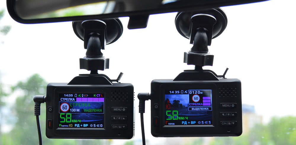 Устройства гораздо компактнее, чем ожидаешь от регистратора-детектора. Как уже я говорил, они сравнимы по размеру с обычными видеорегами – и их вполне можно спрятать за зеркало заднего вида. Хотя смысла в этом нет, ведь экран нужен для отслеживания предупреждений о радарах. Вообще на первый взгляд и не скажешь, что в камере спрятан радар-детектор. О его наличии говорит разве что неприметное окошко в левом верхнем углу лицевой панели, предназначенное для обнаружения лазерных комплексов.