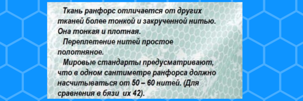Натуральный хлопок, применяемый при производстве относительно новой ткани — ранфорса, делает изделие близким к традиционной бязи. Отличием является использование более тонких, но одновременно более прочных хлопковых нитей, а также увеличение количества переплетений на квадратный метр ткани.