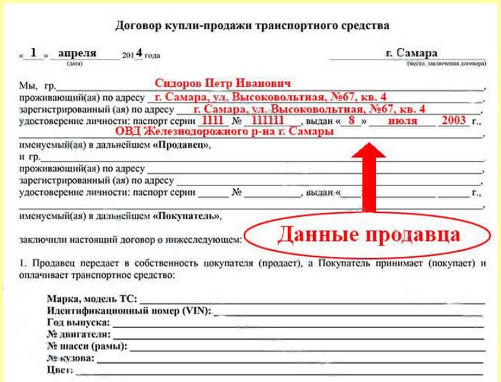 - внести в договор данные о покупателе и владельце (метод внесения рассматриваемых данных не играет особой роли, можно использовать компьютер или писать от руки);