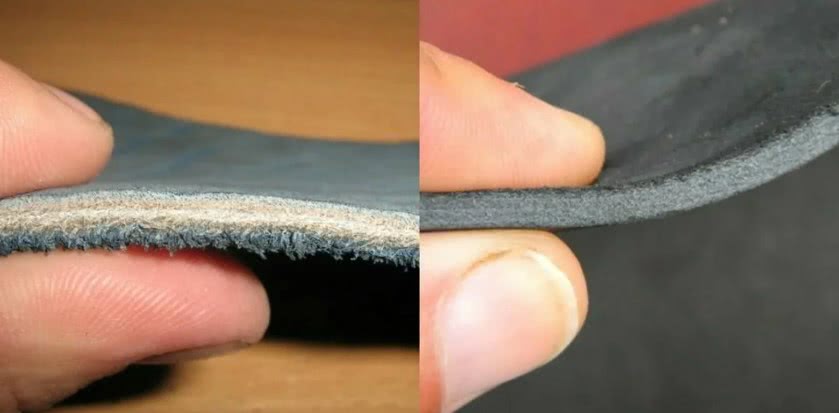 Обратите внимание на то, что натуральная кожа всегда имеет две стороны