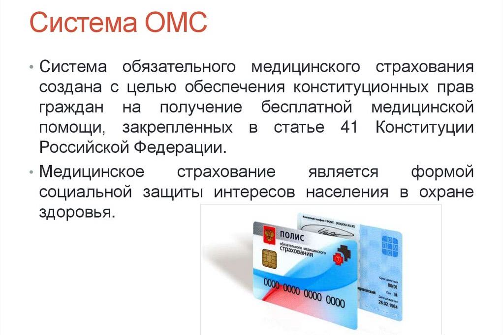 Обязательное медицинское страхование (ОМС) – это государственная система взаимоотношений между медицинскими учреждениями и страховыми компаниями, при которой последние оплачивают первым услуги по оказанию медицинской помощи населению. Для самих граждан такие взаимоотношения между субъектами ОМС проходят за пределами его компетенций и выражаются в получении медицинских услуг, перечень которых установлен законодательно, безвозмездно.