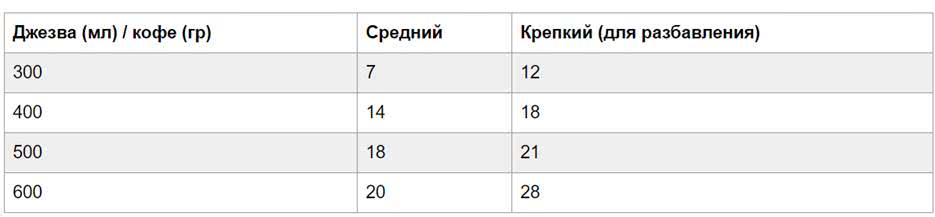Продолжительность варки кофе зависит от материала и объема джезвы, толщины дна, мощности нагревательного элемента, степени помола кофейного порошка, состава кофе.