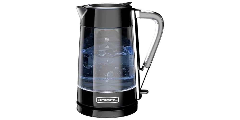 На седьмой ступеньке ТОПа стоит Polaris PWK 1715 CGL. Чайник со стеклянным корпусом объёмом 1,7 л. Шкала нанесена с двух сторон для удобства контроля уровня воды. Основание выполнено из нержавеющей стали, устойчивой к воздействию температур, а остальные детали – из пластика. В Polaris реализована технология залива воды WATERWAY PRO, которая обеспечивает простоту залива воды без открывания крышки. Но при необходимости её можно снять, чтобы произвести внутреннюю очистку.