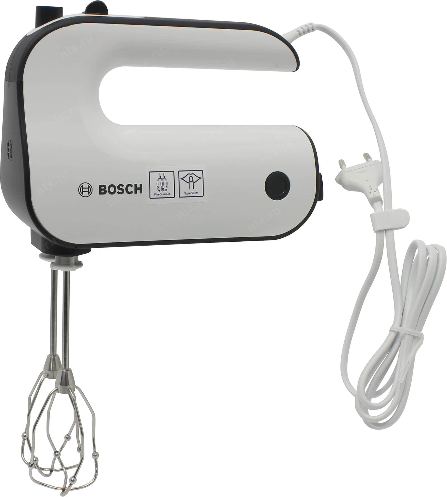 Это недорогой хороший миксер. Идеальный вариант для тех, кто не спорит о том, какой миксер лучше, Бош или Мулинекс, а просто ищет качественный и бюджетный товар. Он обладает удобной конструкцией и хорошей комплектацией. Имеет три режима скорости. Выполнен миксер из прочного пластика, венчики – из нержавеющей стали. Хорошо подойдёт для хозяек, которые ценят компактность и экономичность.