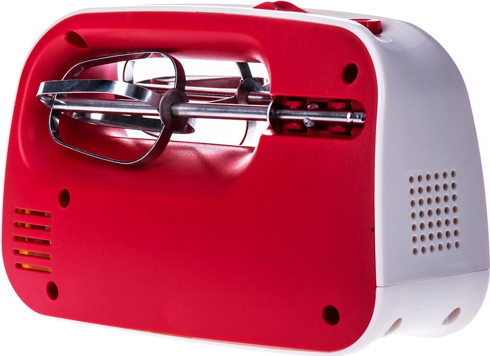 В рейтинге лучших кухонных бытовых предметов уже давно можно отыскать этот миксер для кухни. В его комплектацию входят два венчика и пара тестомесильных крюков. Имеет 4 режима скорости. Насадки снимаются с помощью специальной кнопки. Имеет незначительный вес, поэтому даже самая хрупкая хозяйка сможет без особого труда им пользоваться и не ощущать при этом усталости. Для тех, кто ищет бюджетный вариант без лишних изысков – это неплохой выбор.
