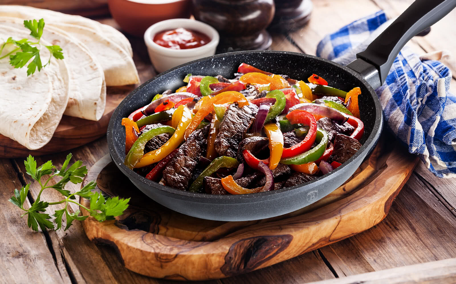 Гранитные сковороды — это посуда для людей, ценящих функциональность и дизайн. Их внешний вид относится к древним временам и каменной кулинарии. Покрытие сковороды дополнительно усилено частицами гранита, которые делают их, как и титановые сковороды, очень устойчивыми к повреждениям и царапинам.