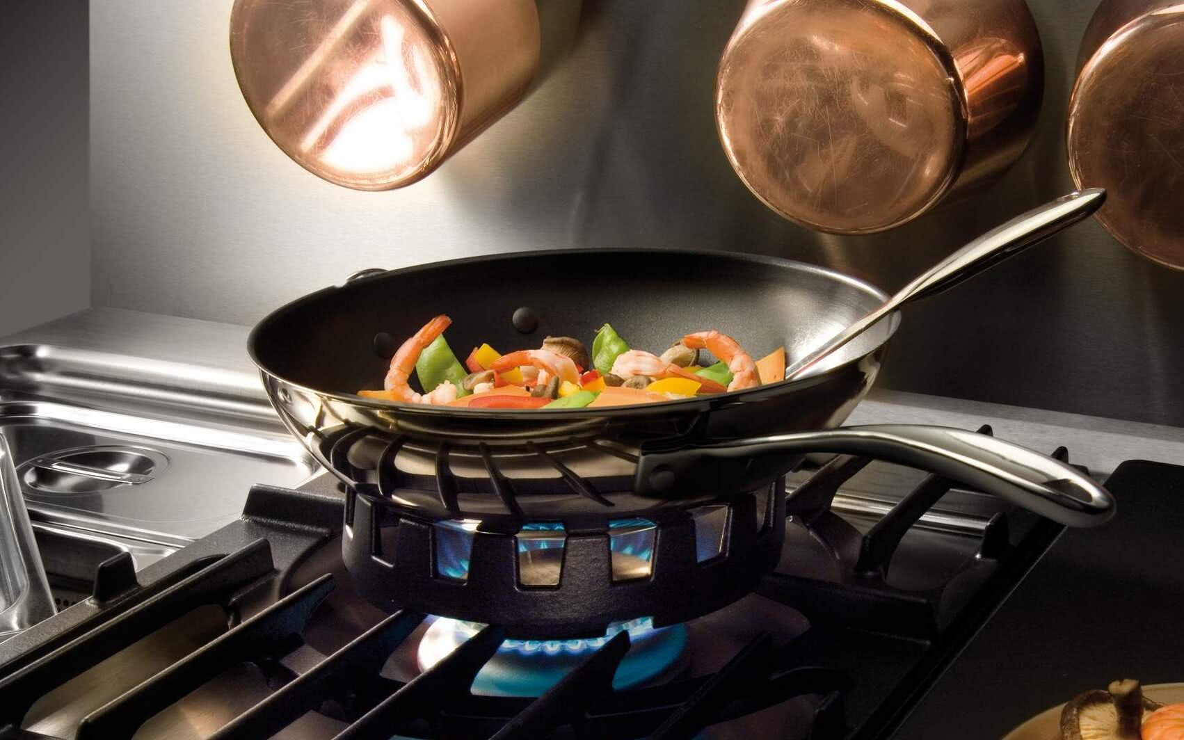 Выбирая, какую сковороду купить для газовой плиты, загляните внутрь. Антипригарные покрытия придают посуде новые свойства – можно жарить без жира, легко мыть, продукты не пристают к внутренней поверхности.