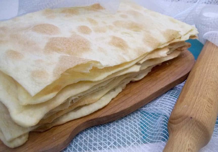 - Разогрейте духовку до 200°С. Вынимайте шарики с тестом по одному, быстро раскатывайте как можно тоньше и выпекайте на силиконовом коврике или пергаменте 5-7 минут до золотистой корочки.
