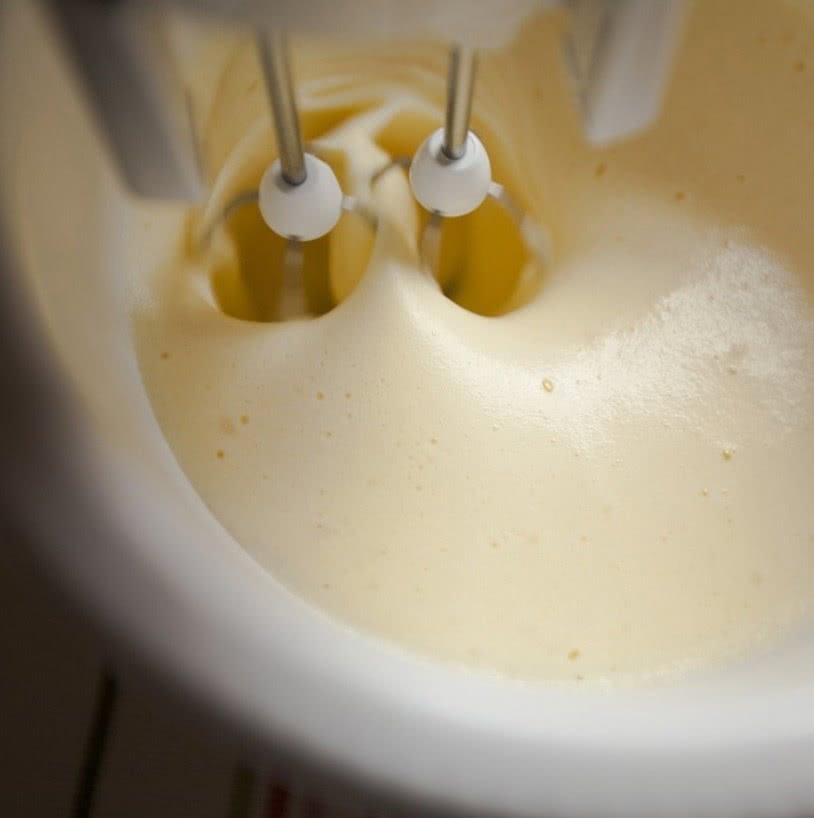 - Полученную массу взбить до пышности и легкости ручным миксером или венчиком.
