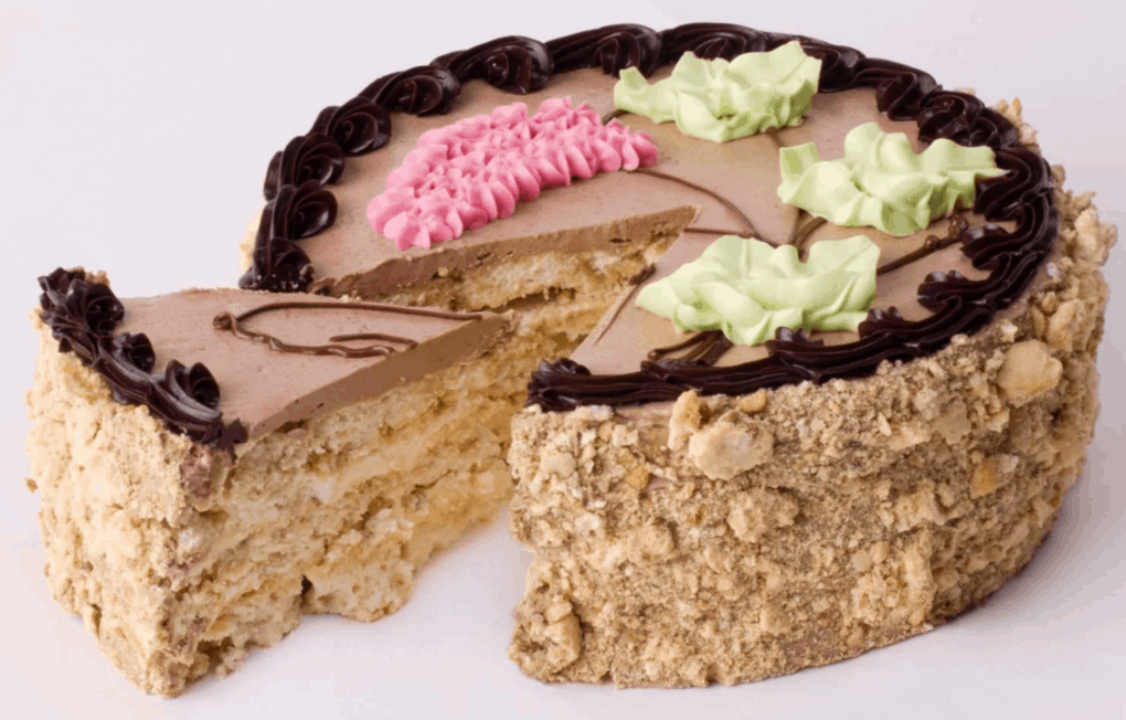 Похожий внешне на предыдущий, но существенно отличающийся по вкусу торт является настоящей сказкой для маленьких детей и их родителей. Создается он из бисквитного теста и высококалорийного масляного теста. Из-за таких составляющих блюдо не рекомендуется к употреблению тем людям, которые тщательно следят за своей фигурой, хотя отказаться от такого удовольствия не так уж просто.