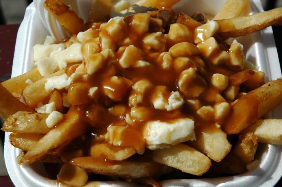 - Poutine – необычное по своему внешнему виду и вкусу блюдо, в основе которого картофель фри и творог, залитые особым соусом.