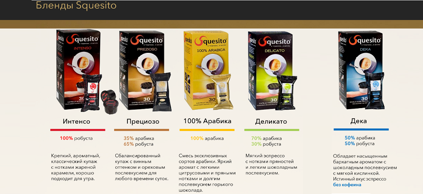 Важно! Именно в этих капсулах любители кофеина и характерной горчинки найдут кофе из 100% робусты. Совместимы с кофемашинами Сквизито и Филипс