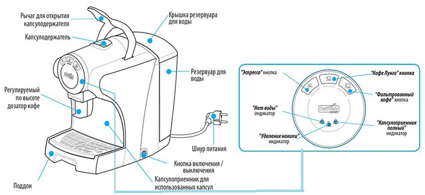 - можно использовать капсулы Неспрессо и Дольче густо;