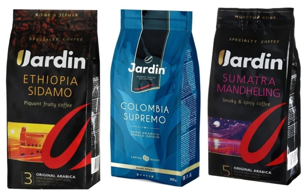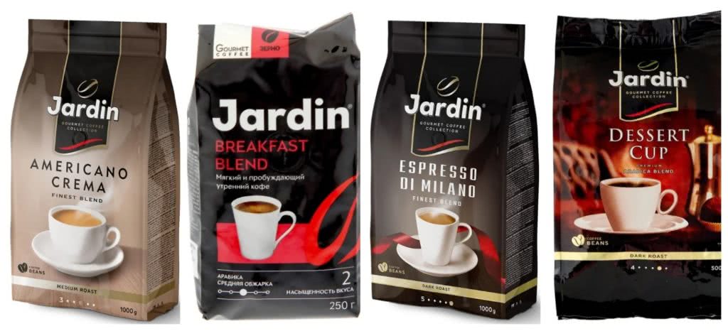 - Жардин. Производитель не использует при изготовлении зерна, выращенные на плантациях Бразилии. Предпочтение отдается более редким сортам. Благодаря этому вкус напитка приобретает многогранность. В нем отмечаются цитрусовые, фруктовые, цветочные, ягодные и шоколадные нотки.