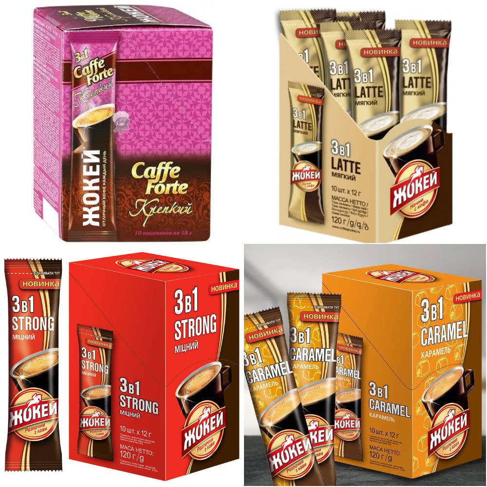 Жокей в широком ассортименте представляет растворимый, порошковый и сублимированный кофе, а также напиток 3 в 1.