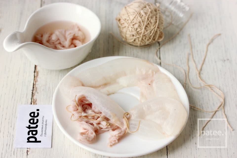 - Хорошо промываем кишки холодной водой, и они готовы.