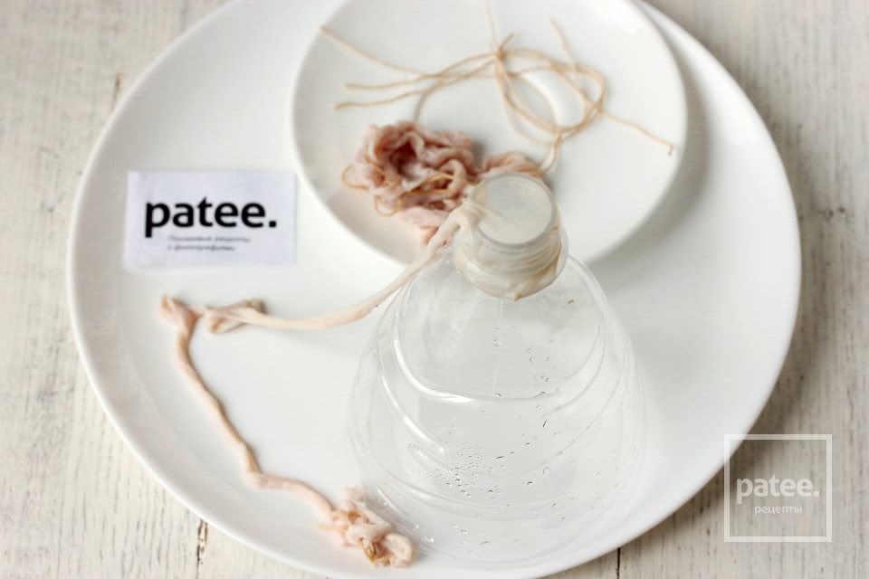 Кишки необходимо хорошо промыть и просушить с помощью бумажной салфетки.