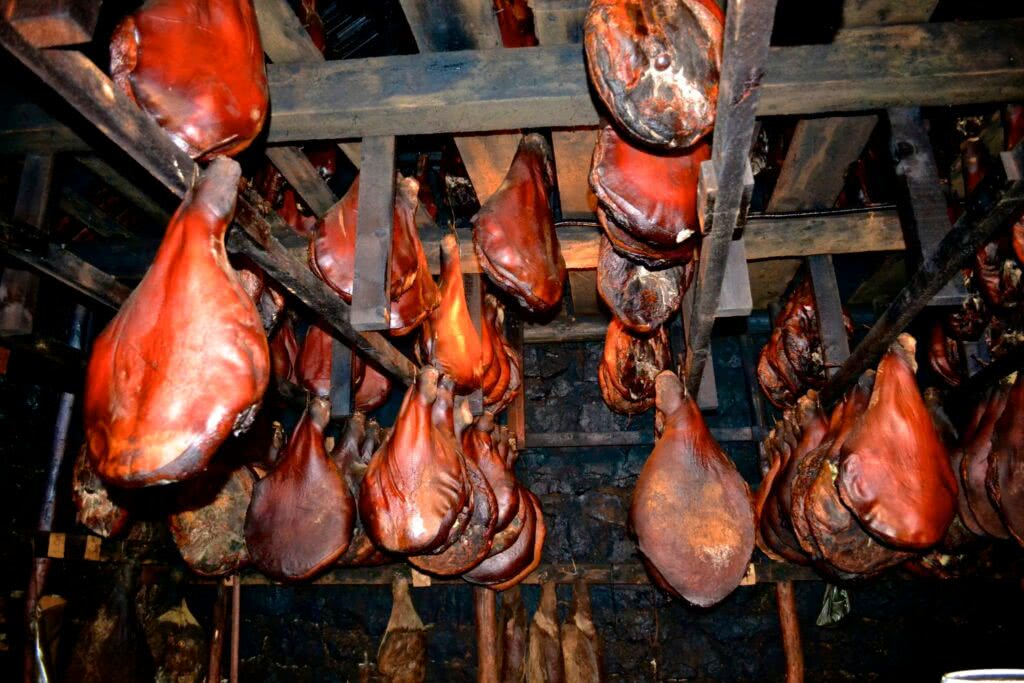 Традиционным и историческим является способ приготовления мяса под раскаленными докрасна углями. Мясо помещают в специальную посуду и накладывают сверху горячие куски угля. Нередко мясо варят в воде с добавлением молока и приправ. В туристических местах вам обязательно предложат ассорти «мешано мэсо», за один присест вы попробуете все национальные изюминки мясной кухни. Одно из основных национальных блюд Черногории — вяленый окорок, не уступающий по вкусу пармской ветчине. Хамон и пршут – это синонимы. Нежное, пикантное мясо является визитной карточкой закусочной карты ресторанов. В меру жирное, хорошо жуется и стоит весьма недорого в сравнении со своим испанским родственником.