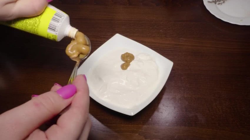 Берем небольшую емкость, в которую выкладываем сметану, добавляем пшеничную муку.