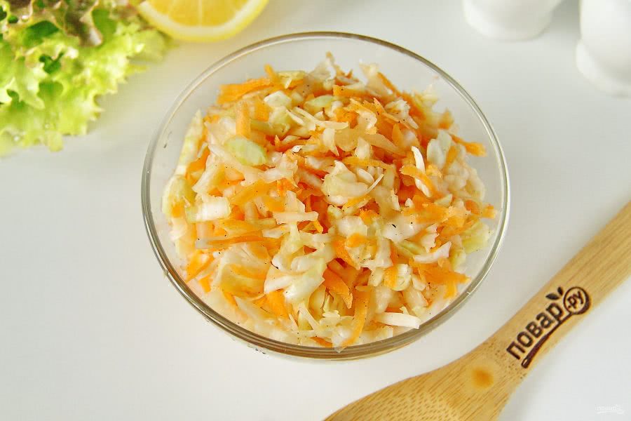 Капусту тонко нашинкуйте, добавьте тертую на крупной терке морковь, соль и перец по вкусу. Перемешайте и помните немного руками, чтобы капуста стала мягче.