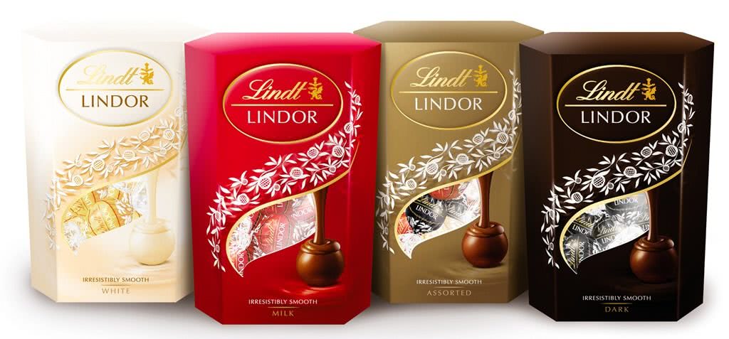 Коричневый десерт «Линдор» – это превосходное сочетание «тающего во рту» молочного шоколада и вкуснейшей начинки на кремовой основе. Конфеты расфасованы в красочные корнеты весом 100, 200 и 337 грамм. Прекрасным подарком в новогоднюю ночь, который удобно положить под елку, будет коробка лакомства с несколькими вкусами – «lindt de Lindor» (Ассорти) . Кремовая начинка внутри нежнейшего шоколада – это только одна из вариаций лакомства в праздничном наборе. Производитель разнообразил коллекцию конфетами с кусочками фундука. Гурманы также найдут в коробке «Ассорти» горький шоколад с наполнителем внутри. Друзьям придется по вкусу десерт белого цвета с кремовой начинкой.
