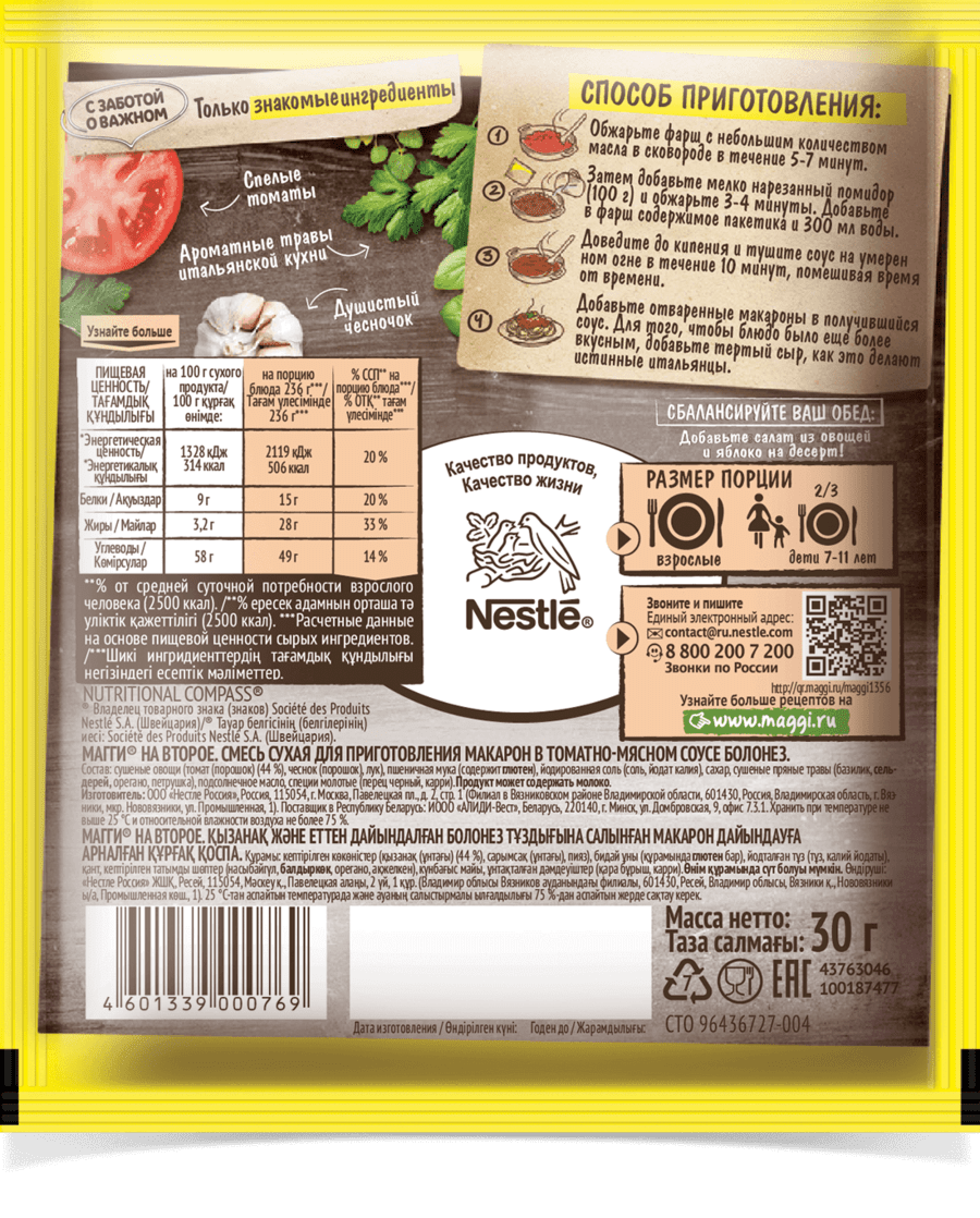 Но если гости уже на пороге, а времени на приготовление совсем нет, или ингредиенты недоступны в вашем городе, стоит попробовать приправу “Магги (на второе) Болоньез”.